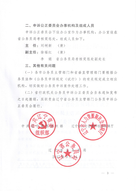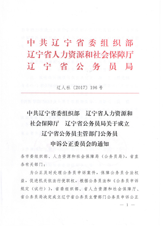 中共辽宁省委组织部 辽宁省人力资源和社会保障厅 辽宁省公务员局关于成立辽宁省公务员主管部门公务员申诉公正委员会的通知