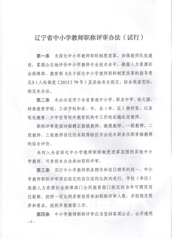 辽宁省人力资源和社会保障厅 辽宁省教育厅关于印发《辽宁省中小学教师职称评审办法(试行)》的通知