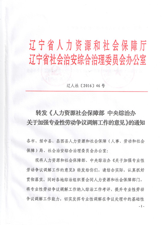 转发《人力资源社会保障部 中央综治办关于加强专业性劳动争议调解工作的意见》的通知