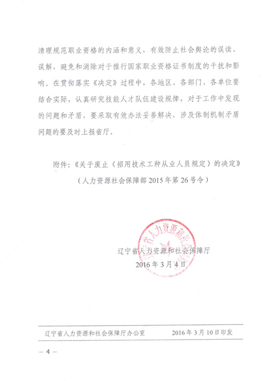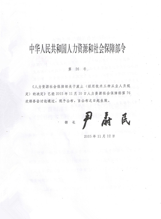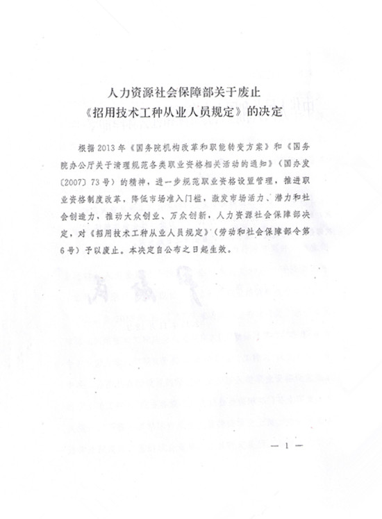 关于贯彻落实人力资源社会保障部废止《招用技术工种从业人员规定》决定的通知