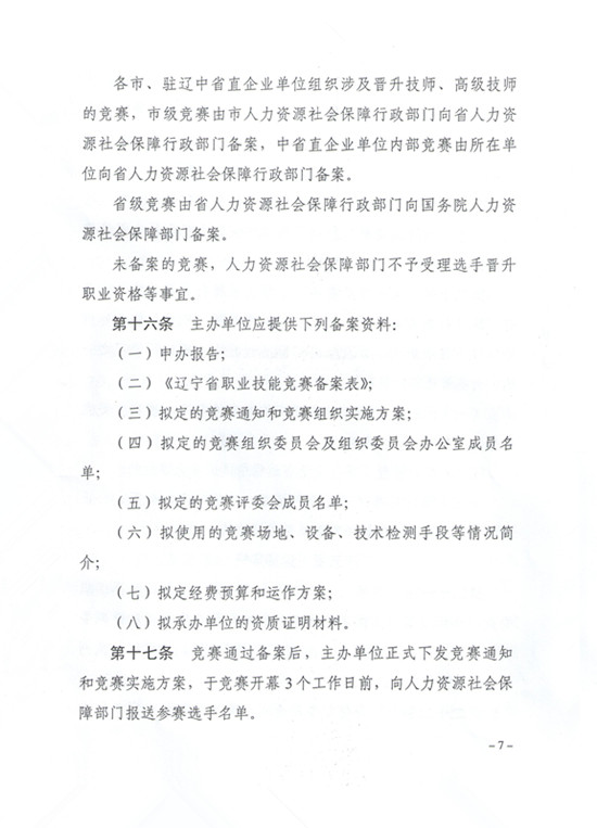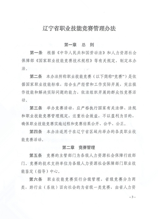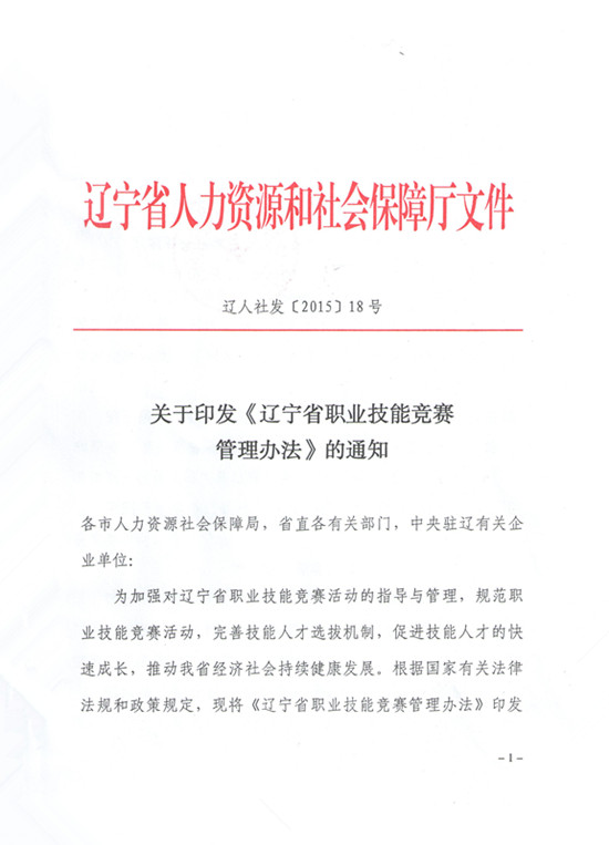 关于印发《辽宁省职业技能竞赛管理办法》的通知