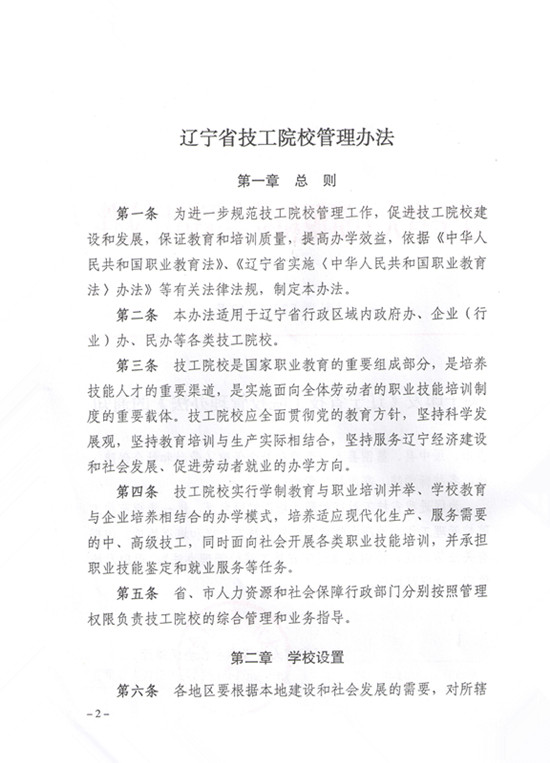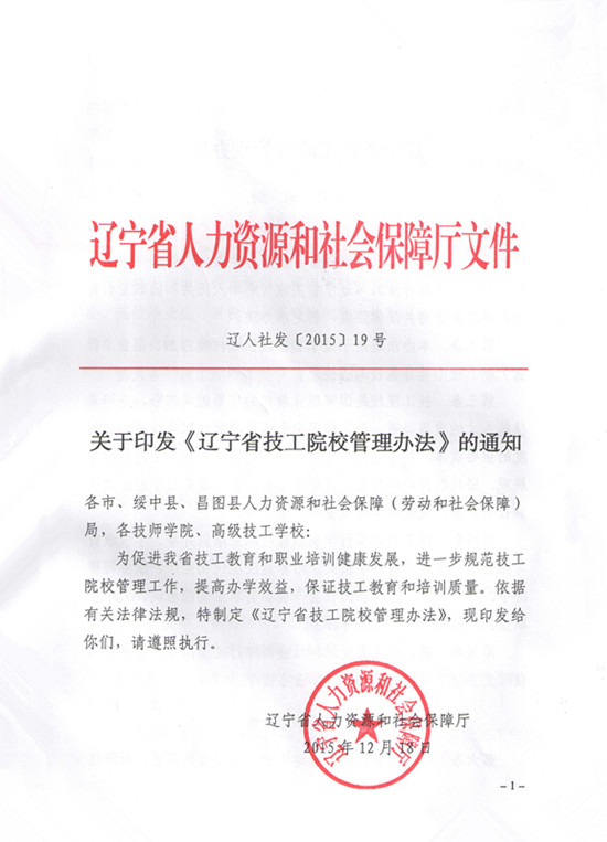 关于印发《辽宁省技工院校管理办法》的通知