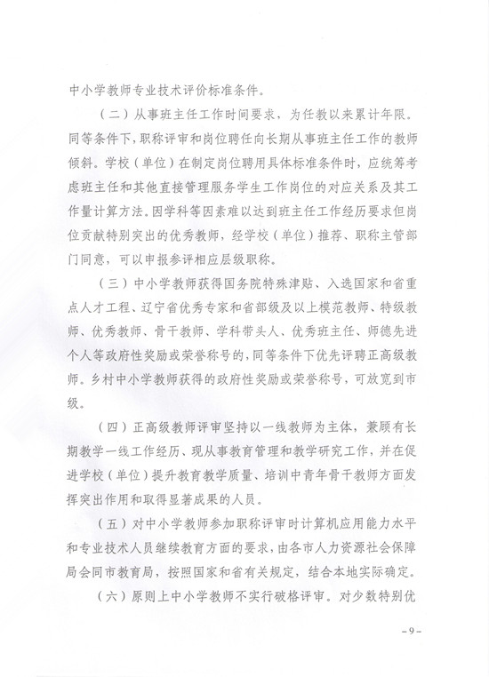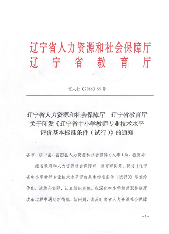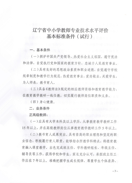 辽宁省人力资源和社会保障厅 辽宁省教育厅关于印发《辽宁省中小学教师专业技术水平评价基本标准条件(试行)》的通知