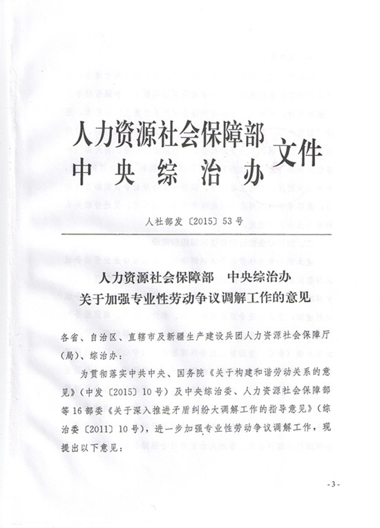 转发《人力资源社会保障部 中央综治办关于加强专业性劳动争议调解工作的意见》的通知