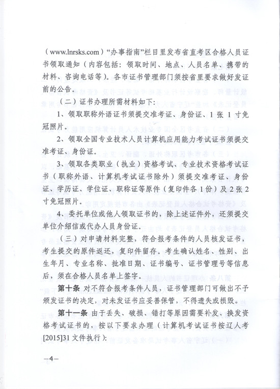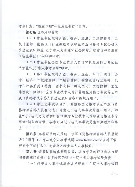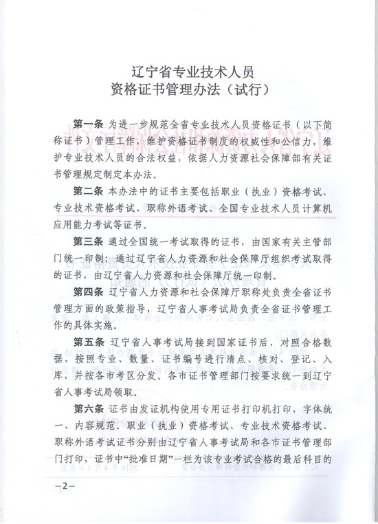 关于印发《辽宁省专业技术人员资格证书管理办法(试行)》的通知