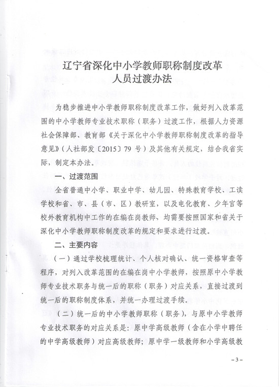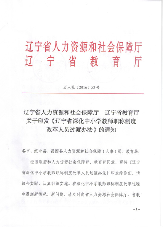 辽宁省人力资源和社会保障厅 辽宁省教育厅关于印发《辽宁省深化中小学教师职称制度改革人员过渡办法》的通知