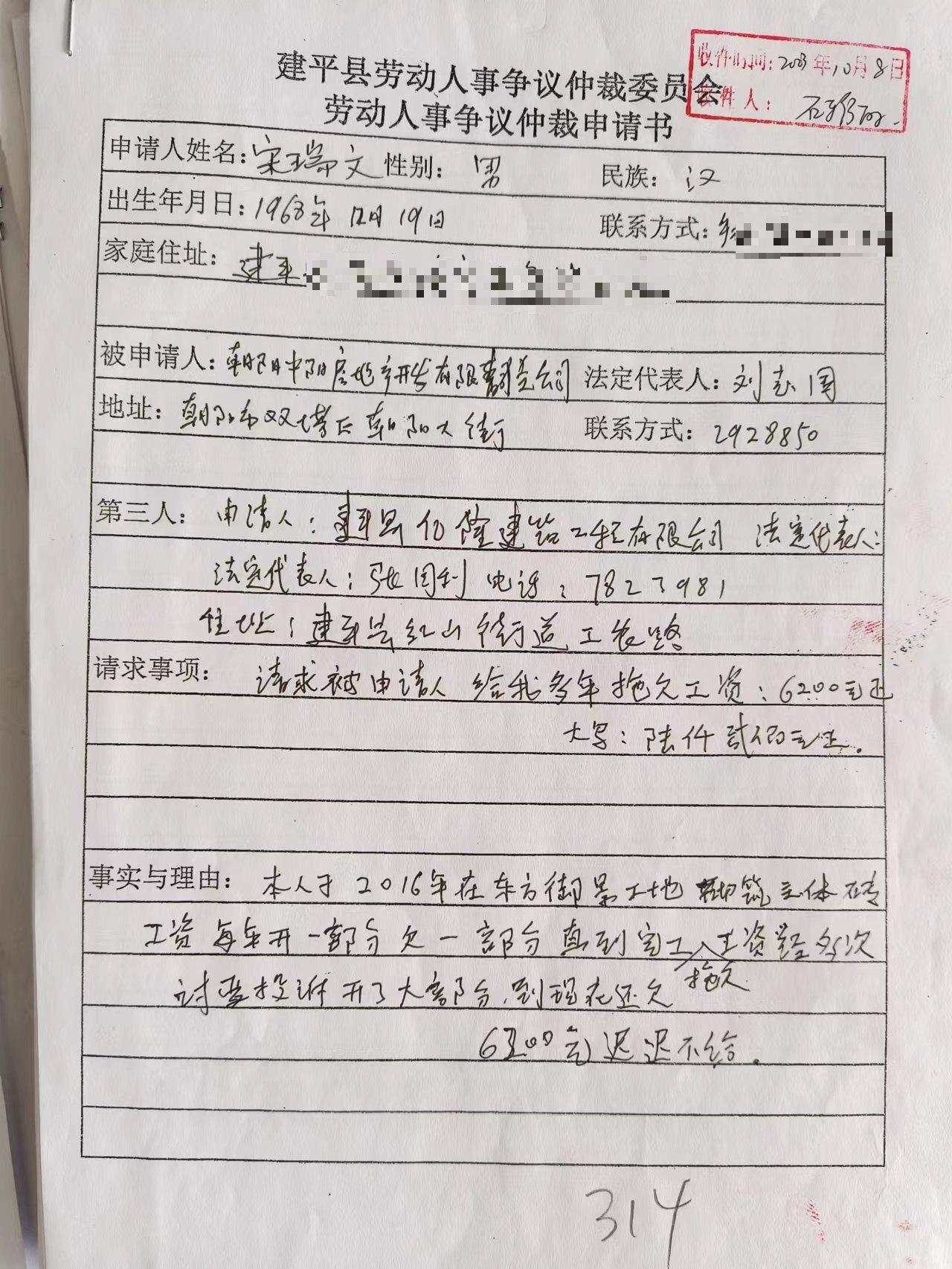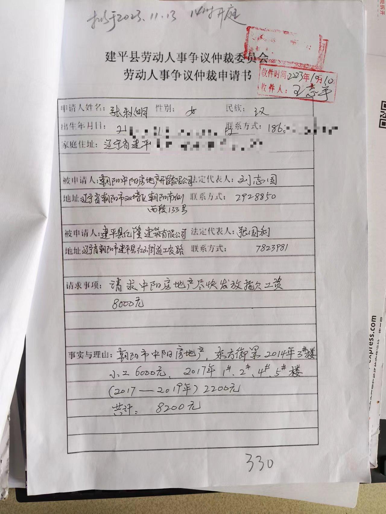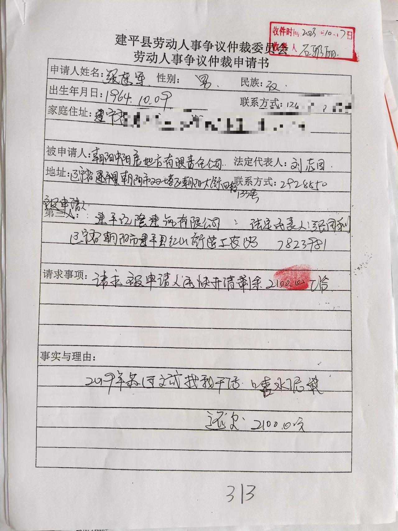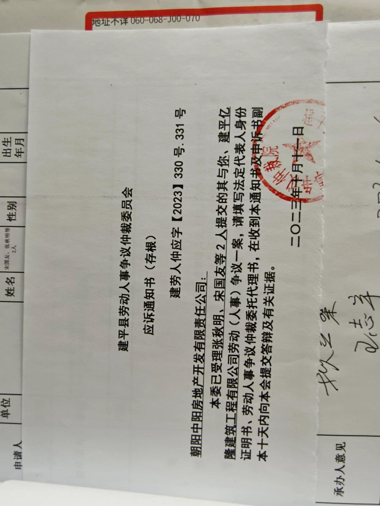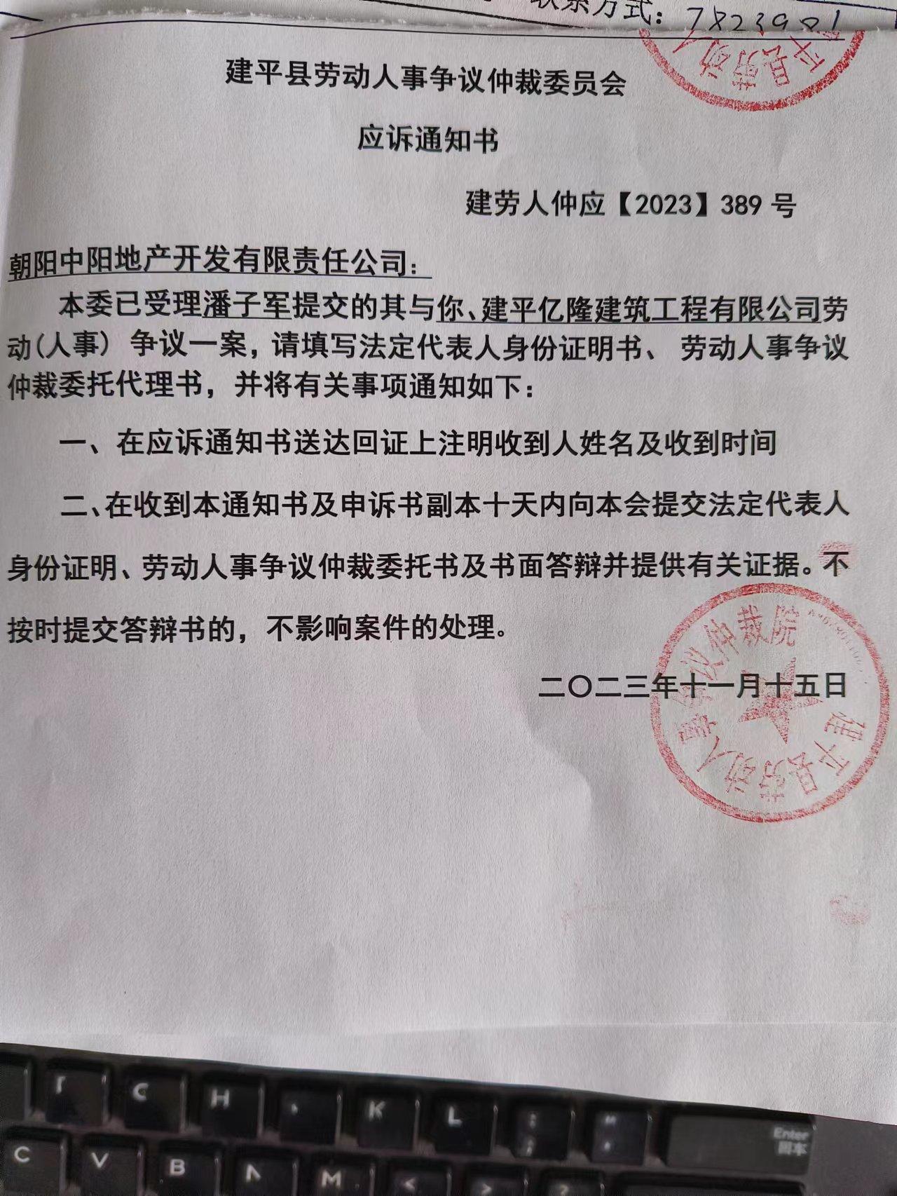 本委已受理申请人王志永、丁学强、步立武、吴刚、孙国东、张瑞来、赵维阁、刘銮建、王树成、白国志、赵显微、张连军、宋瑞文、张秋明、宋国友、潘子军等共计16人与被申请人你、被申请人建平亿隆建筑工程有限公司因劳动报酬劳动争议一案(建劳人仲裁字〔2023〕302-314、330、331、389号)。现依法向你公告送达应诉通知书、仲裁申请书副本、开庭通知书,自本公告发布之日起经过30日即视为送达。请你自本公告送达之日起10日内向本委提交答辩书、法定代表人身份证明书、委托代理书及相关证据材料。