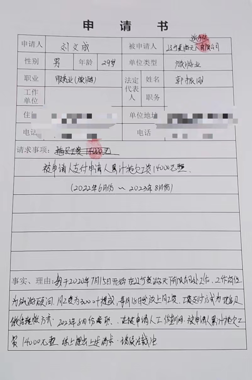 本委已受理刘文成诉你公司拖欠工资争议案(沈河劳人仲字〔2024〕086号),因用其他方式无法向你公司送达,现依法向你公司公告送达应诉、举证、组庭人员(首席仲裁:夏秀琳,仲裁员:金水子 韩子慧,书记员:刘月辉)及开庭通知书、申请书。上述法律文书自本公告发布之日起经30日即视为送达。提交答辩状和证据的期限为公告送达期满后15日内。