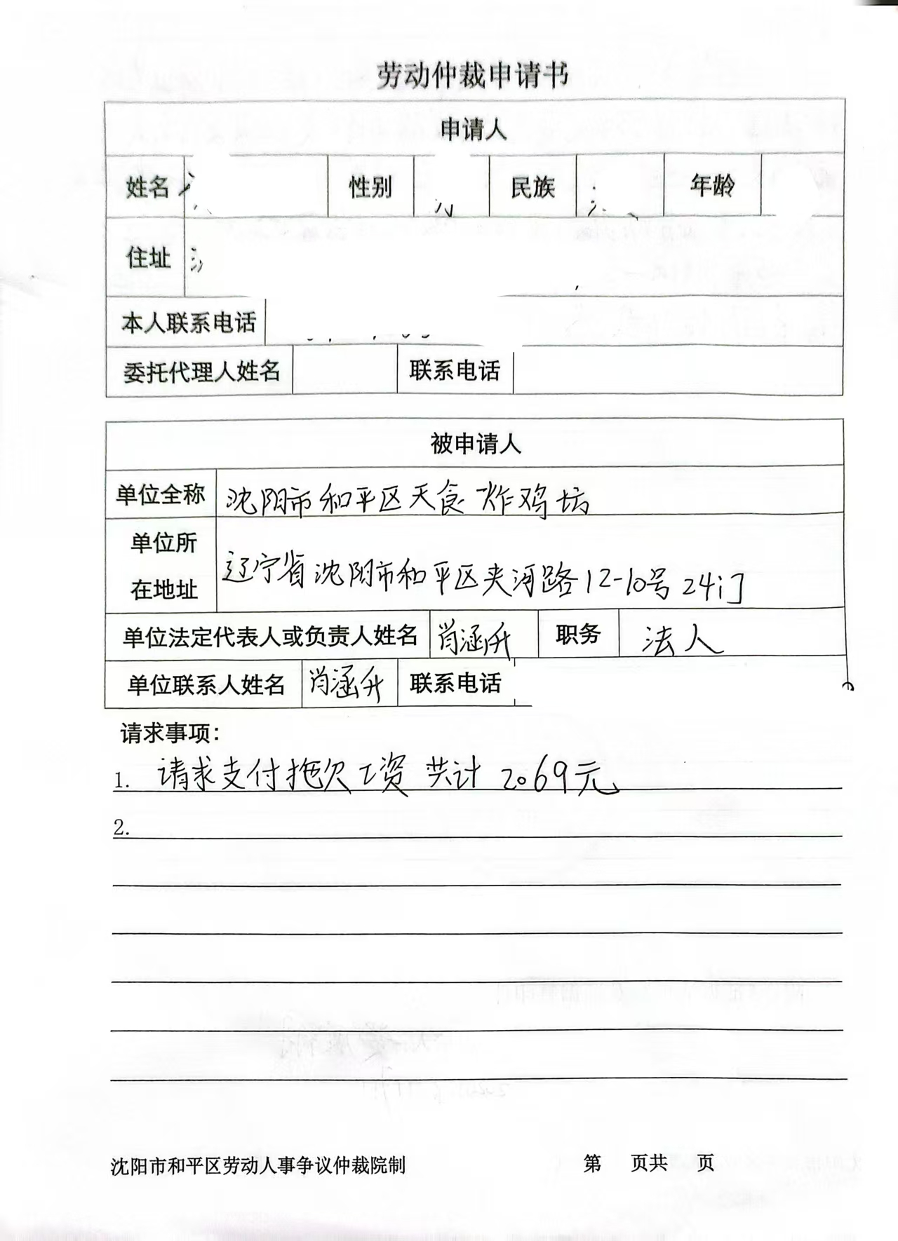 本委已受理费展翔诉沈阳市和平区天食炸鸡坊拖欠工资等一案(沈和劳人仲字〔2025〕845号),因用其他方式无法向你送达,现依法向你公告送达应诉、举证、组庭人员(独任仲裁员:毛超。书记员:张茜)及开庭通知书、申请书。上述法律文书自本公告发布之日起经30日即视为送达。提交答辩状和证据的期限为公告送达期满后15日内。本委定于2026年5月29日13时30分在沈阳市和平区长白西路51号时代广场A座9楼,和平区劳动人事争议仲裁院908仲裁庭开庭审理。届时不到庭,本委将依法缺席裁决。