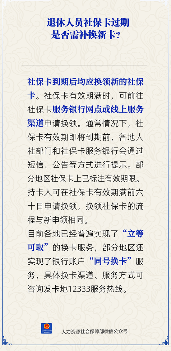 9月30日 退休人员社保卡过期是否需补换新卡?