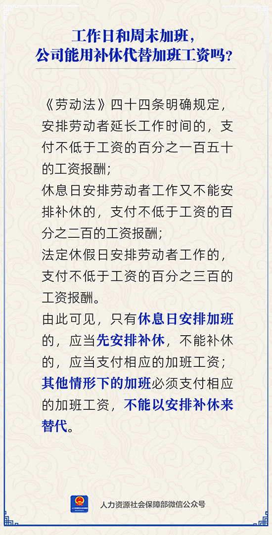 工作日和周末加班,公司能用补休代替加班工资吗?