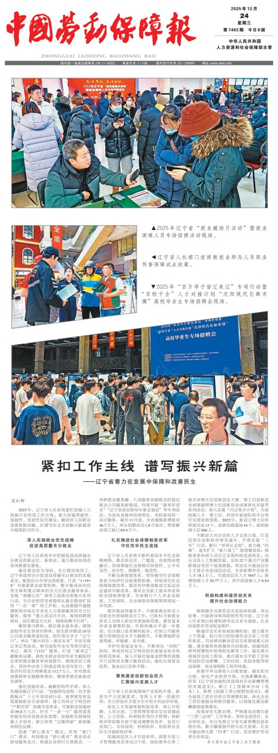 2025年,辽宁省人社系统紧扣加强人力资源开发利用工作主线,着力加强普惠性、基础性、兜底性民生建设,解决好人民群众急难愁盼问题,在谱写东北全面振兴新篇章中展现担当作为。