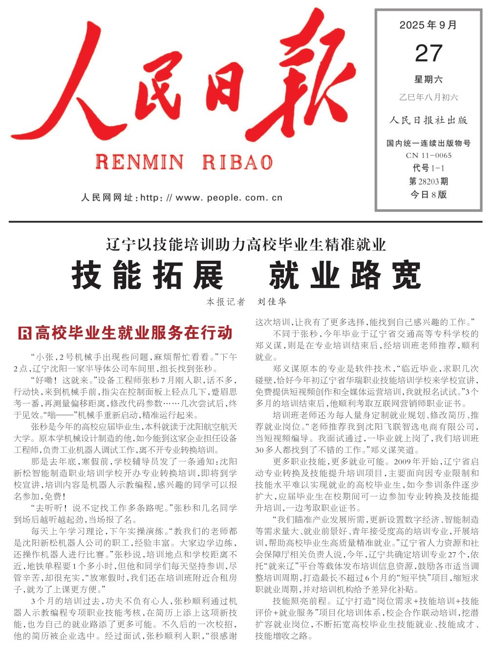【人民日报要闻版】关注辽宁以技能培训助力高校毕业生精准就业:技能拓展 就业路宽