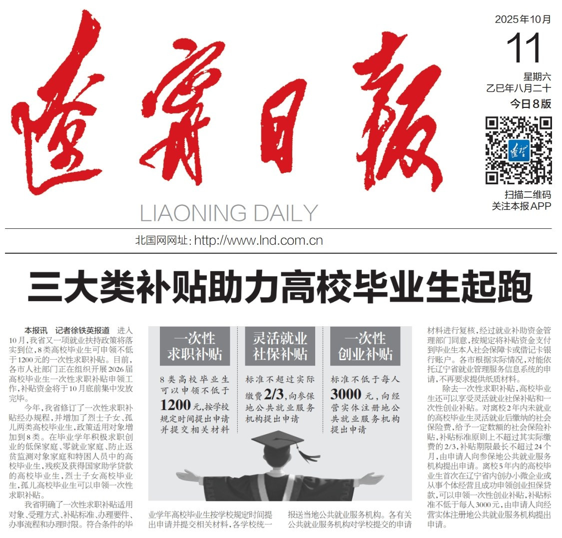【辽宁日报】三大类补贴助力高校毕业生起跑