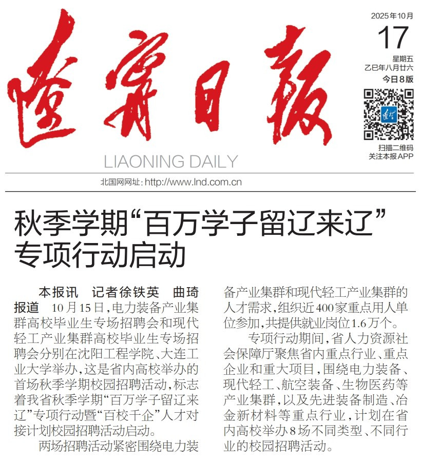 发布时间:2025年10月17日 编辑:省人社厅吴粤 来源:辽宁日报