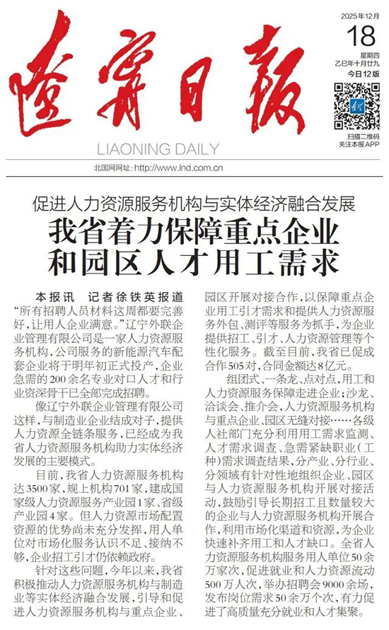 像辽宁外联企业管理有限公司这样,与制造业企业结成对子,提供人力资源全链条服务,已经成为我省人力资源服务机构助力实体经济发展的主要模式。
